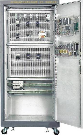 维修电工考核台按标准电气控制柜设计制造规格,充分利用柜内位置,柜内装有网孔板,由学生自己动手布置固定元器件连线实训考核。