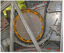防逆转装置如下图,装置装在扶梯上部驱动位。在扶梯上行时凸轮顺时针转动,若扶梯发生异常情况而逆转则凸轮逆转,此时打杆使限位开关动作并使扶梯主刹和副刹动作从而使扶梯停止,反之亦然。同时此功能具备手动测试操作功能。