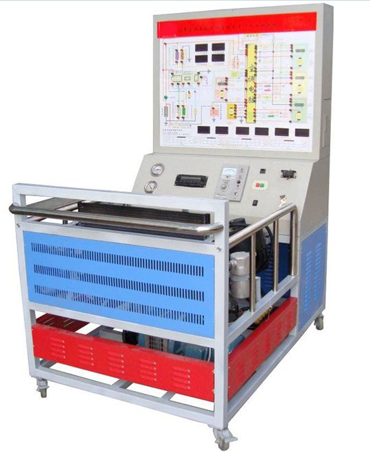帕萨特B5自动空调系统实训台 帕萨特B5自动空调系统实训台简介 产品选用大众帕萨特B5自动空调制冷系统。采用优质钢板骨架,经过机械加工成型,外表面喷涂彩色环氧聚塑。实验台后边设置对开门,方便维修。右则边故障设置装置。底部采用带刹车的万向轮,移动和固定两相宜方便调整设备的摆放位置。整机坚固耐用又美观大方。配套使用说明书及实训指导书。 (二) 结构组成 三相调速电动机、空调蒸发箱、压缩泵、空调控制系统电气元件、压力表、送风管路、空调散热器、干燥瓶、空调控制电脑、空调系统各传感器及执行器、高低压压力表、故障设置和排除盒、控制面板、大型彩色喷绘电路原理图、可移动台架、电源、OBD诊断座、发动机控制电脑及曲轴传感器、实训指导书。 (三) 功能特点 1.数显式温度表显示车内外温度; 2.空调压缩机离合器,冷凝器风扇,鼓风机等采用220V转换的直流电源控制,既方便又安全; 3.风量及温度自动工调整; 4、指针式仪表实时显示高、低压力值; 5.数字式温度计,直观显示蒸发器出风口温度; 6.可通过专用仪器进行抽真空、充注制冷剂、制冷剂检漏等工作; 7.故障模拟系统可模拟实际运行工况,设置多种常见故障。具体内容详见故障模拟设置装置说明。 8.数显式电压表显示各传感器信号; 9.自动空调系统匹配操作等;通过诊断座读取故障码及数据流等。 10.可增装加热装置; (四) 技术参数 1.外观尺寸 1450mm × 1000mm × 1850mm(长×宽×高) 2.工艺汽车油漆高温烤漆处理;转动部件外加装防护装置;加装交流电源漏电保护装置。 3.调速电机:380V/1.5KW 4.蓄电池:60AH/12V 5.交流电源:380V;220V 系列产品: