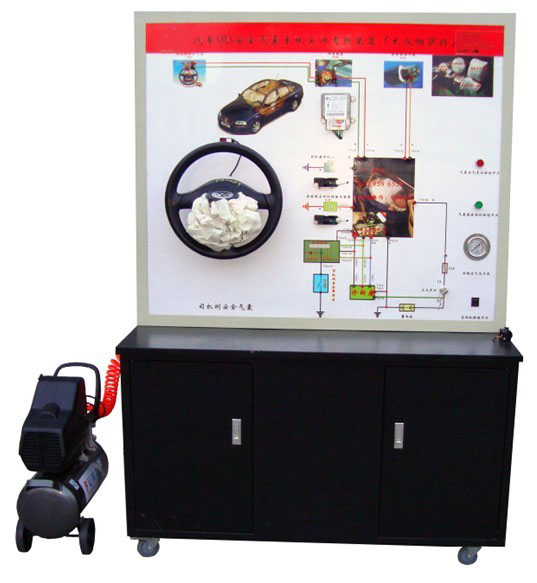 汽车安全气囊系统示教板(帕萨特) 汽车安全气囊系统示教板(帕萨特)简介 汽车安全气囊系统示教板(帕萨特)选用帕萨特安全气囊系统材料为基础制作,模拟汽车碰撞,演示安全气囊系统的工作过程;本示教板功能齐全、操作方便、安全可靠。 (二)结构组成 安全气囊电控单元、安全气囊总成、方向盘、碰撞传感器、弹性线束、空气泵总成、检测端子、故障设置系统、大容量蓄电池或12V开关电源、大型彩色喷绘电路原理图、控制面板、可移动台架、使用说明书及任务驱动式实训指导书等。 (三)功能特点 1.面板上绘有完整的安全气囊系统原理图。设有检测端子,可通过仪器仪表检测传感器,执行器等各种信号参数如电压、电阻、频率等。 2.操纵开关及按钮,可真实演示安全气囊系统(模拟碰撞)的工作过程。 3.数显表显示各传感器信号电压值。 4.发光二极管显示工作元器件状态。 5.故障模拟系统可模拟实际运行工况,设置多种实车常见故障。具体内容详见故障模拟设置装置说明。6.SRS匹配等操作。 7.汽车油漆高温烤漆处理;加装交流电源漏电保护装置;转动元器件外加装防护装置。 8.底架部分采用实验桌,台面保留30cm宽空间,方便放置检测用的仪器及仪表/实验报告等,表面采用烤漆工艺,带自锁脚轮。 9.装有诊断座,可读取故障码与数据流等。 (四)技术参数 外形尺寸:1240mm×550mm×1850mm(长×宽×高) 电源:220V交流电压 工作电压:12V直流电压 工作温度:-50℃~50℃ 系列产品: